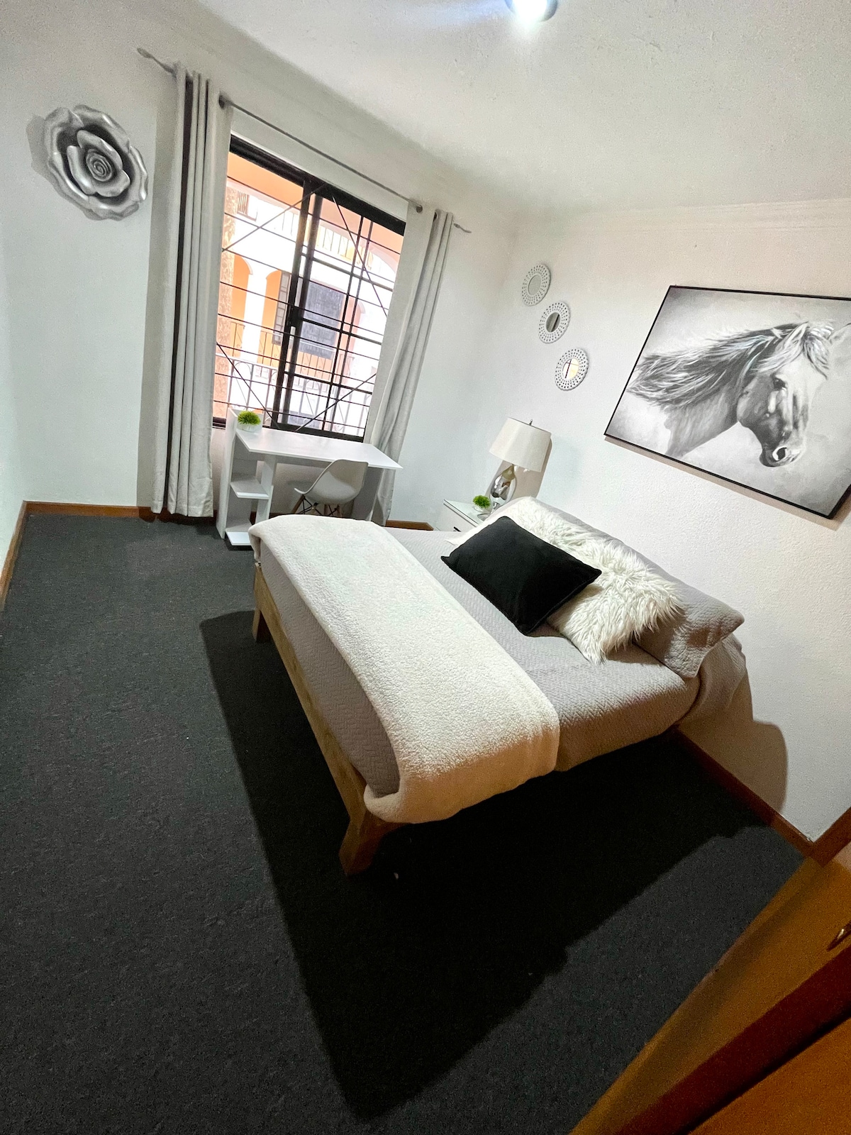 La suite esta equipada para brindar el mayor confort. Descanse en su cama con colchón memory foam mientras ve una película en la smart TV, WIFI alta velocidad. Disfrute de un buen baño en una regadera con acabados de alta calidad. Trabaje sin preocupaciones en el escritorio contamos con wifi de alta velocidad.