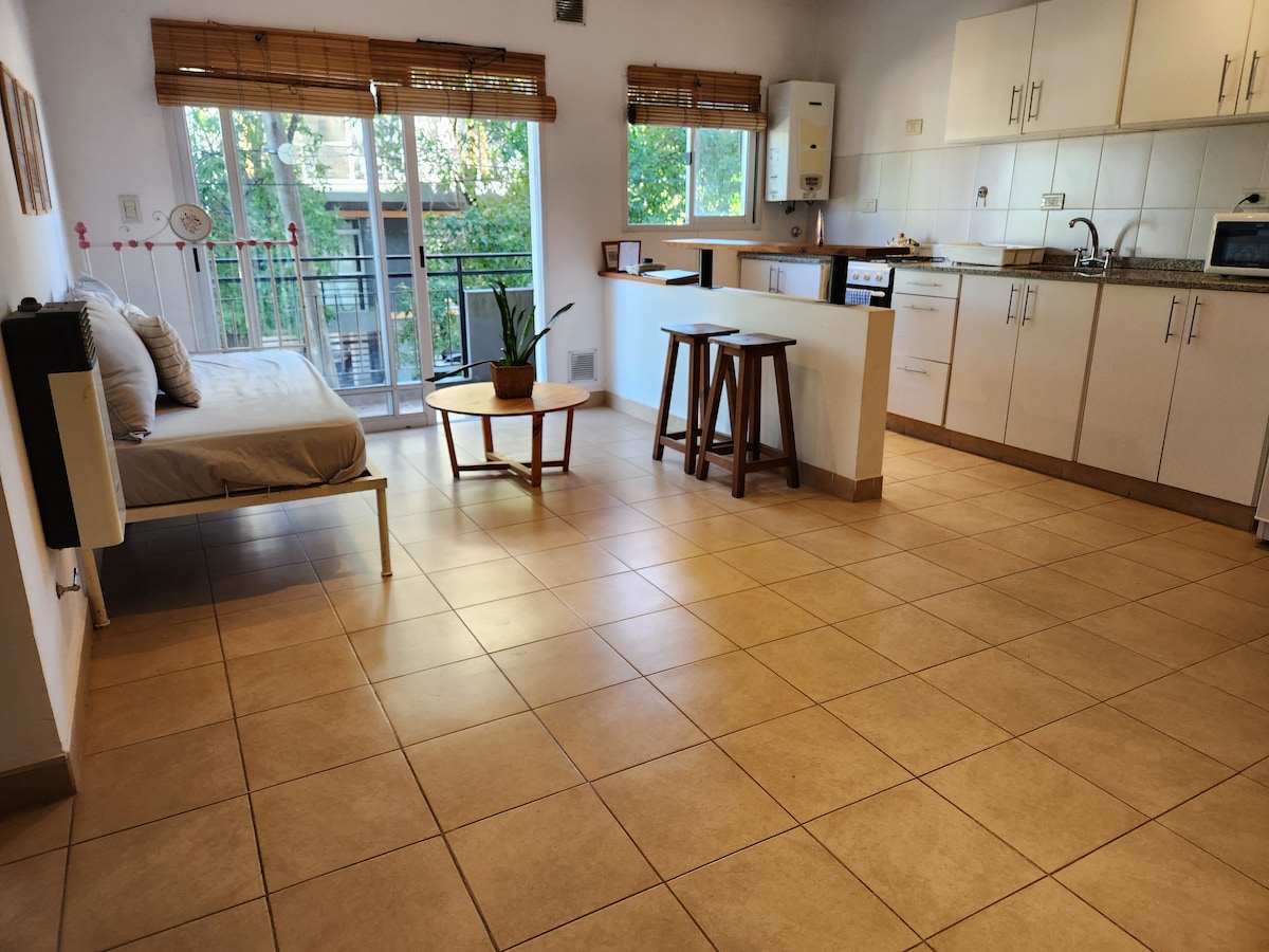 Departamento acogedor en edificio tranquilo de solo 10 unidades. Ubicado en primer piso con balcón al frente, ofrece un espacio luminoso y funcional de 30 m². Cuenta con cocina equipada, heladera, microondas, aire acondicionado, Smart TV de 32”, Wi-Fi y cochera. Incluye desayuno seco de cortesía, ideal para comenzar el día. Un lugar cómodo y cálido, perfecto para descansar o trabajar.