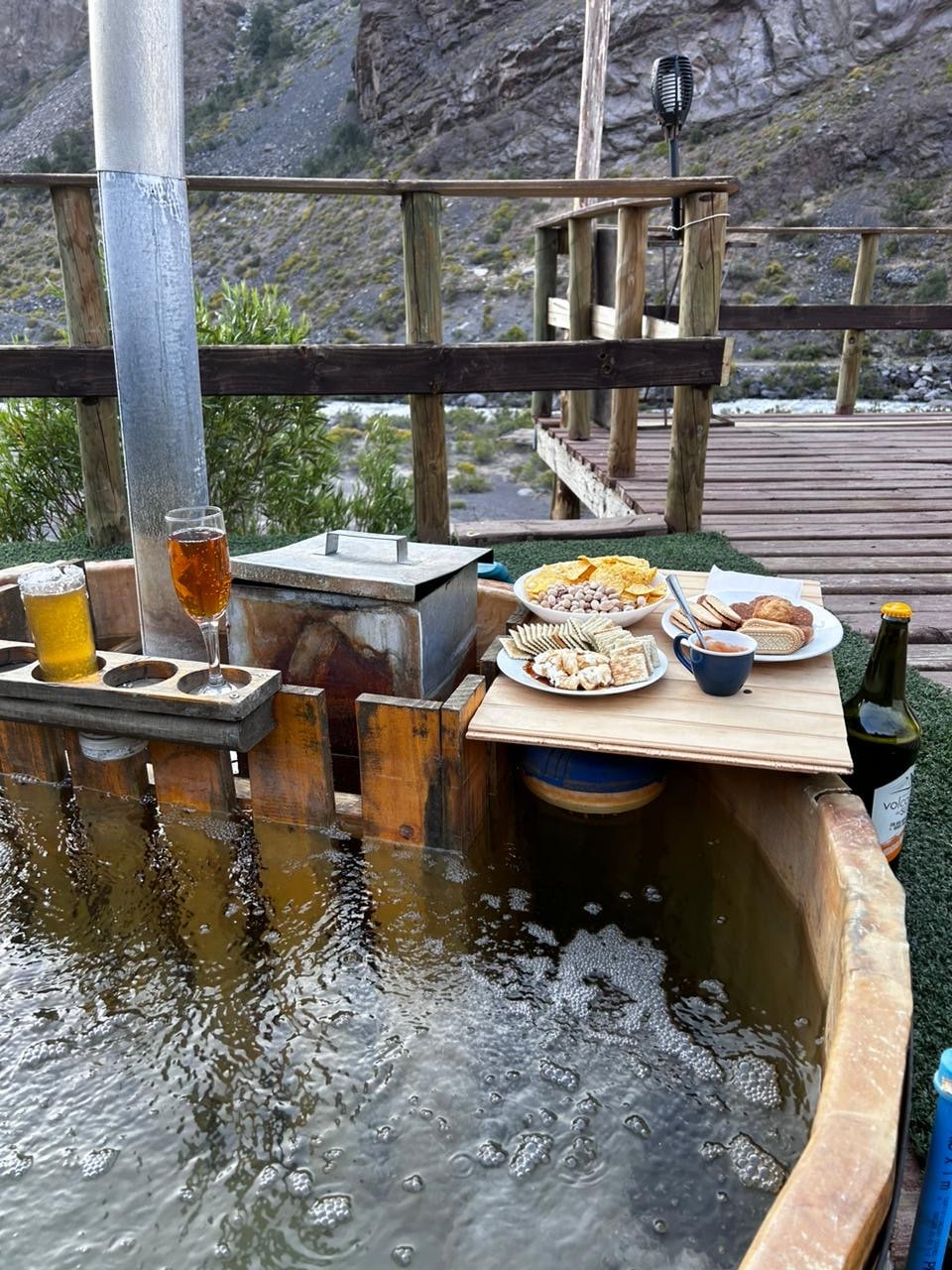 Tenemos 3 Domos con todas las comodidades, senderos y bajadas directa al rio, cada domo cuenta con su tinaja de agua caliente exclusiva y privada con uso máximo de 4 horas o hasta que se enfrie el agua.. quedara a su disposcion por toda su estadía, sin leña adicional. vista privilegiada a la montaña. Baño con ducha agua caliente, cocina equipada, parrilla en. terraza. a 15 minutos del Embalse el Yeso. Recuerde llevar toallas y carbón su hará uso de la parrilla de la terraza.