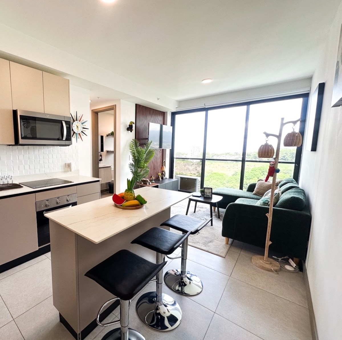 Be among the first to enjoy this brand-new, modern apartment on the 30th floor of Secrt Sabana! Take in breathtaking views, a sleek kitchen, cozy living room with TV, a comfortable bedroom, a work area with monitor and a parking spot include in the buliding. Perfect for business trips or romantic getaways. Includes access to pool, gym, rooftop, coworking and more. Comfort, style, and unbeatable views in one of San José’s top locations!