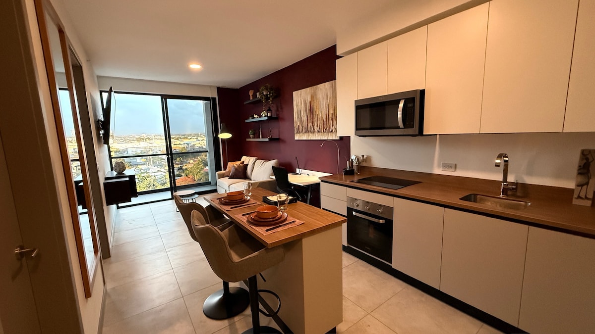 Moje stanovanje se nahaja v središču mesta v bližini metropolitanskega parka La Sabana in ponuja popolno mešanico sprostitve in funkcionalnosti. Prostor je zasnovan za udobje in je idealen za virtualno delo s popolnoma opremljeno kuhinjo za energijske zajtrke ali intimne večerje. Uživajte v mirnem spancu, popolni zasebnosti in priročnosti kopalnice z WC-jem. Edinstveno sodobno vzdušje izboljša vaše bivanje. Poleg tega stanovanje nudi brezplačno parkiranje v stavbi za dodatno udobje.