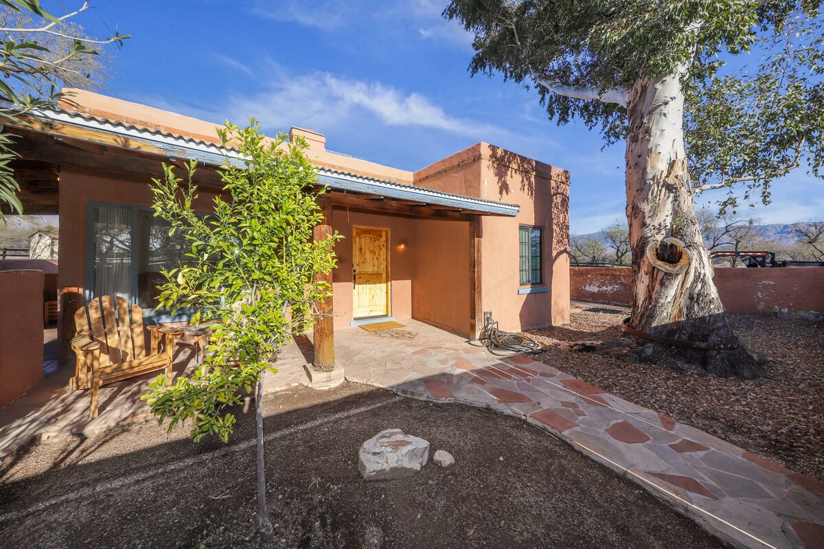 Dobrodošli v naši udobni hišici na sončno energijo, primerni za 1-2 gosta, z majhno kuhinjsko nišo z mikrovalovno pečico, majhnim hladilnikom in aparatom za kavo Keurig. Notranji bazen s slano vodo, ogrevan na 85 stopinj. Hiša za goste ima zakonsko posteljo z vzmetnico Sealy Posturepedic, klimatsko napravo, pisalno mizo za prenosnik in 32-palčno televizijo s pretočnim predvajanjem Roku. Casita ima zasebno teraso z mizo, stoli in senčnikom za obedovanje v čudovitem vremenu v Tucsonu! Omrežje Wi-Fi je hitro gigabitno.