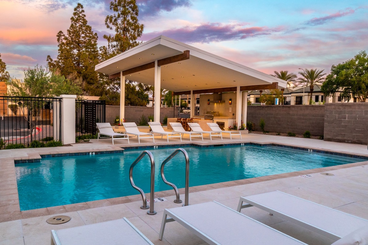 One block from Downtown Chandler in the Charming Historic Sunset Manor neighborhood. Fully remodeled, fresh and cozy! Family-friendly! Or the perfect retreat for business travelers who want to stay close to nightlife. Modern Southwest decor, swimming pool, large back yard and BBQ. Single level floorpan. Stroll across the street to shops and restaurants or lounge in the spacious back yard. Full washer and dryer in the home. High speed Wi-Fi. Historic San Marcos Golf Course across the street.