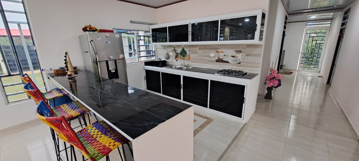 Dobrodošli v Terra Belli! Vaš oddih v osrčju vzhodnih ravnic. Če iščete čas zase, za svoje, da se povežete s tem, kar je resnično pomembno, vdihnete čist zrak in uživate v naravi, je to pravo mesto za vas. Le 5 minut od Guamala in 10 minut od Acacíasa združujemo udobje in mir. Ima 5 spalnic za 18 oseb, 3 kopalnice, masažno kad, bazen, igrišče, odprto kuhinjo, dnevno sobo, jedilnico, Wi-Fi in zasebno parkirišče. Čakamo na vas.