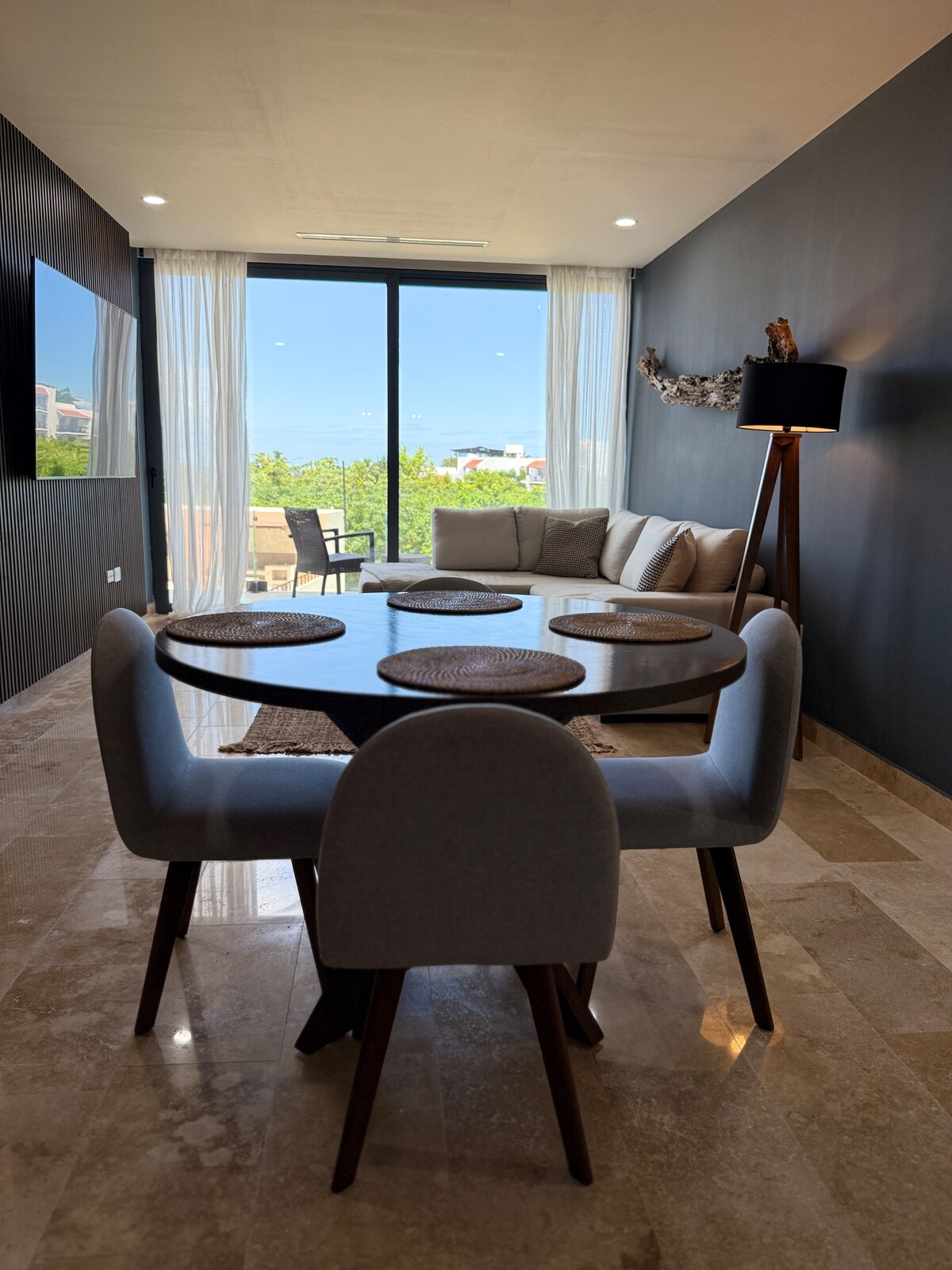 Pobegnite v naše razkošno 2-sobno stanovanje v osrčju Cozumela! Z osupljivimi terasami, sodobnim bivalnim prostorom in visokokakovostno opremo je to stanovanje idealno mesto za sprostitev in mir na otoku. Sprostite se pred televizorjem z ravnim zaslonom, večerjajte za elegantno mizo za šest oseb ali pa pripravite svoje obroke v popolnoma opremljeni kuhinji. Naše udobne spalnice se ponašajo z zakonskimi posteljami, zasebnimi terasami in razkošno posteljnino za miren spanec.