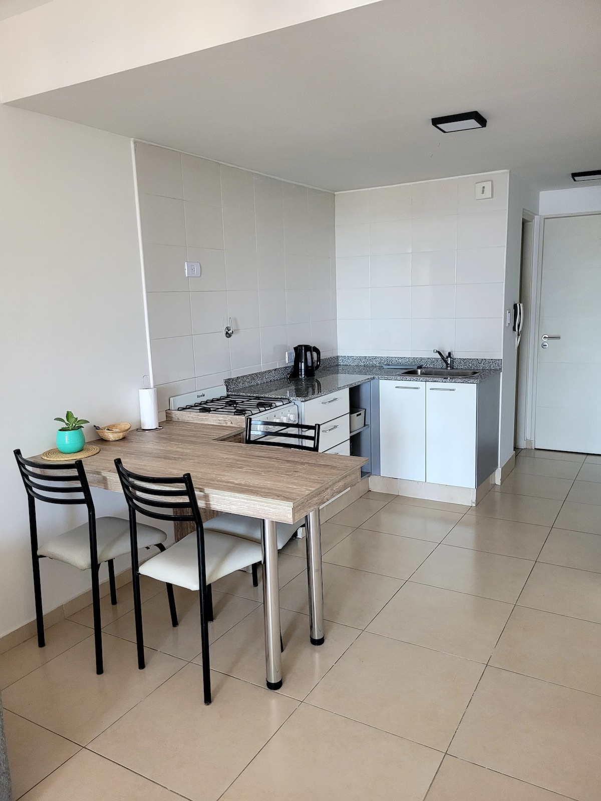 Departamento de 1 dormitorio. Ideal para 1 - 3 personas (hasta 4), comedor con barra (banquetas altas) y amplio balcón para disfrutar desayunos y como espacio de trabajo. Acceso en 1º piso por escaleras en edificio privado. Espacios amplios.