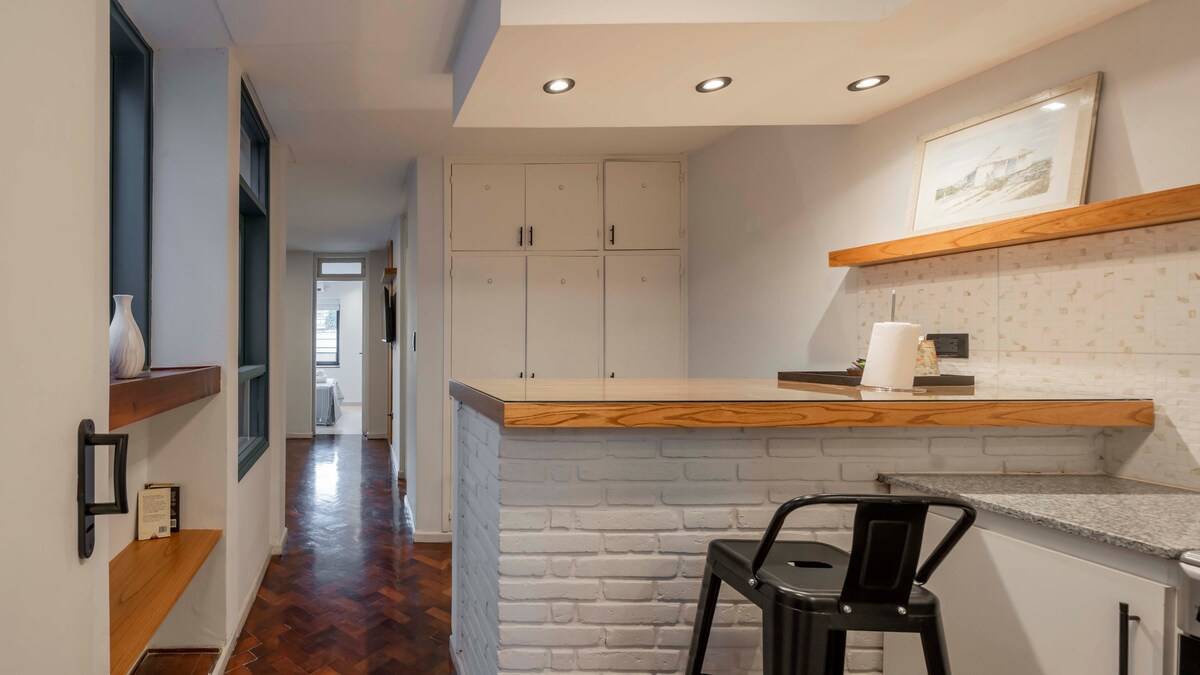 Departamento de 1 dormitorio. Ideal para 1 - 3 personas (hasta 4), comedor con barra (banquetas altas) y amplio balcón para disfrutar desayunos y como espacio de trabajo. Acceso en 1º piso por escaleras en edificio privado. Espacios amplios.