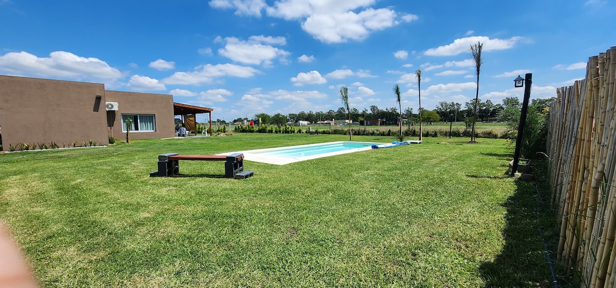 Udobna hiša v naravnem rezervatu v mirni vasici Salvador María en Lobos v provinci Buenos Aires v Argentini. Območje je sestavljeno iz mirnih chacras sredi listnatega gozda in z ulicami večletnih nasadov, ki vodijo do zgodovinskega polo kluba La Araucaria. In 5 minut od Lagune de Lobos, kjer se lahko ukvarjate z vodnimi športi. 2 uri iz Buenos Airesa. Ima park s površino 7300 m, nasad, štedilnik, žar, bazen, galerije in pokrito garažo.