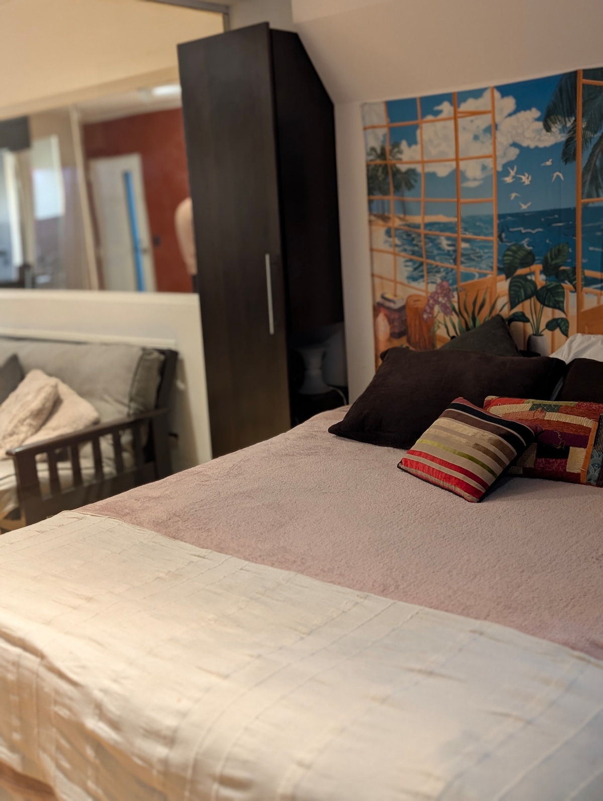 Es una habitación con baño privado que tiene una vista despejada donde podrás disfrutar de atardeceres únicos en la Ciudad de Buenos Aires. Estamos a 12 cuadras de los bosques de Palermo, a 8 cuadras del centro de exposiciones La Rural, a 20 cuadras del Movistar Arena, a 3 cuadras del Polo Tecnológico y del Distrito Arcos Mall, a 8 cuadras de la estación de Metro ''Palermo"', y de la avenida Santa Fe por donde pasan más de 20 líneas de colectivos para moverte por la ciudad. Somos Gay friendly.