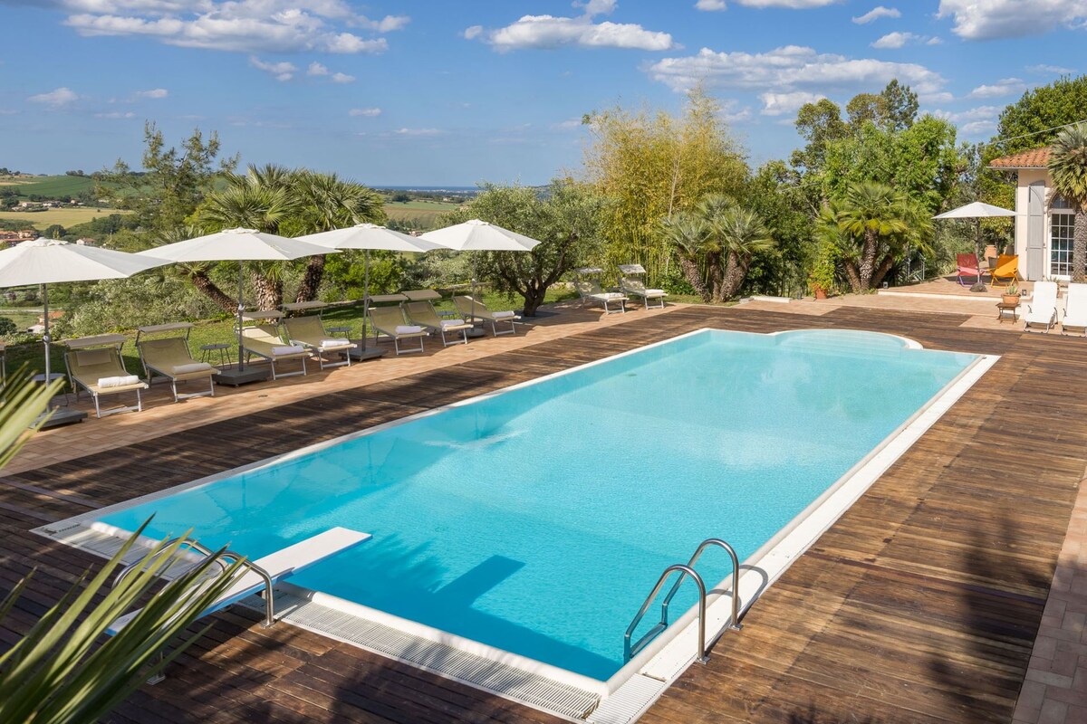 Panoramska podeželska hiša | Pogled na spa, bazen in Marche