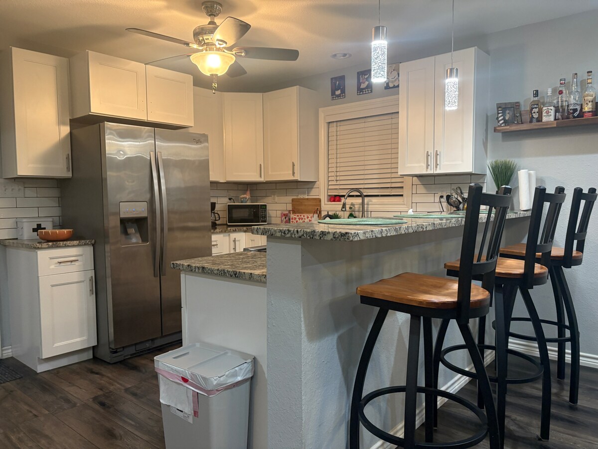 To je očarljiv majhen enosobni dom v prelazu Aransas, Tx, ki je le nekaj minut oddaljen od trajekta, ki vas pripelje do plaž Port Aransas! Obkrožajo nas številna najljubša lokalna ribolovna območja, izstrelitve čolnov in kajakaška območja, ki jih ponuja Aransas Pass. Na dvorišču je velika ograja in veliko parkirnih mest za vozila, čolne itd. Zaprta zadnja veranda z zaklenjenimi nevihtnimi vrati, popolnoma opremljena kuhinja z vsemi osnovnimi potrebami. Hišni ljubljenčki in kajenje brez tobačnega doma!