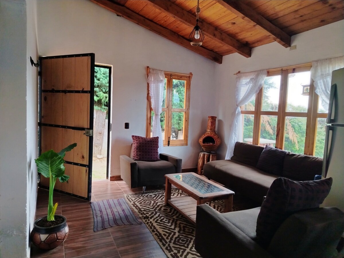 Cozy forest SUITE, views of nature, volcanoes, city, sky. Mountain magic. Chimney. Relax and enjoy in a safe environment, 1100m over Mexico City. 40 minutes from Interlomas and Toluca. Ideal for a love, family or friend’s getaway. Get inspired, hike, homework, or acclimatize to the altitude for a competition. Sunny hillside. Country houses area with surveillance, near new highway. Living room, fireplace, dining room, kitchenette, 2 bedrooms, 2 bathrooms, hot water, grill, screen, Wi-fi.