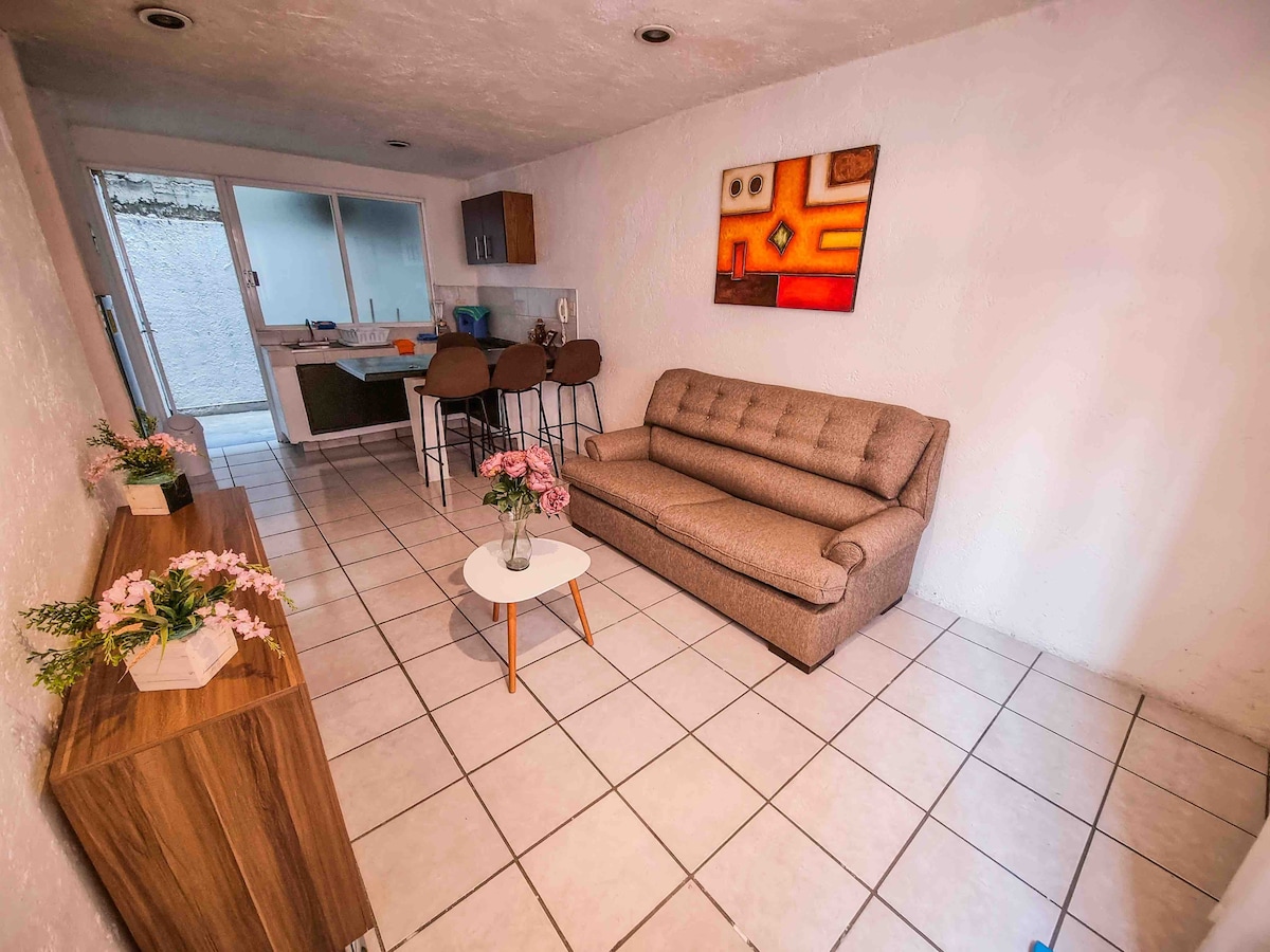 Uživajte v edinstvenem bivanju v udobnem in čistem stanovanju, ki je le 3 minute hoje oddaljeno od piramide Cholula. Idealno za pare/družine do 4 oseb ali popotnike, ki želijo raziskovati peš, obkroženi s kavarnami, bari in lokalno kulturo. Ponuja neprekosljivo lokacijo, zaseben in miren prostor, teraso za sprostitev ter hiter Wi-Fi za delo ali pretakanje vsebin. Doživite Cholulo kot domačini in uživajte v eni od najbolj znamenitih mehiških destinacij, ki je le nekaj korakov stran.