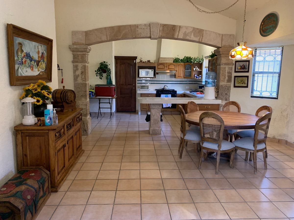 Esta casa es ideal para un escape del ruido de la ciudad, se encuentra retirada de las avenidas y hoteles. Te encantará pasar aquí tu vacación, podrás usar el asador en la terraza, disfrutar de las estrellas en la noche y pasar noches agradables jugando billar con la chimenea. Una casa de campo que te espera para crear recuerdos. Nuestra colonia colinda con el Rincón del Montero, y tenemos un acceso privado el cual NO forma parte de la colonia Rincón del Montero.