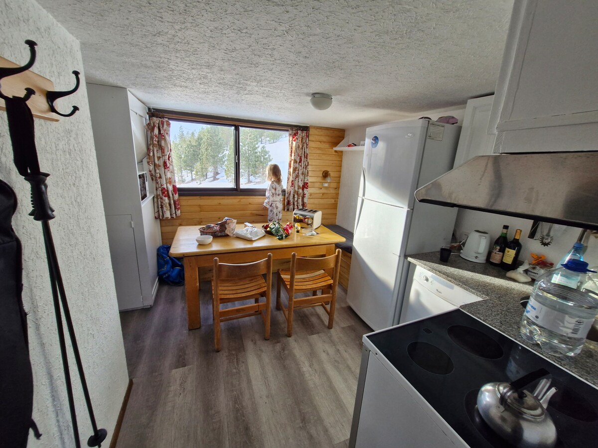 Le nekaj metrov od žičnic! Popolnoma prenovljeno: Nove vzmetnice in grelnik vode Popolnoma prepleskana in nova toplejša tla. Dvojček s 3 spalnicami. Velika kuhinja + jedilnica, dnevna soba, 2 spalnici. Velik hladilnik, velika pečica, mikrovalovna pečica, pomivalni stroj itd. Dnevna soba in jedilnica za 8 oseb. Dnevno čiščenje je vključeno v ceno. Nahaja se v stanovanju v tretjem nadstropju, do katerega vodijo stopnice, in ponuja odličen razgled na pobočja. Omara za smuči/snowboard z garderobo ob vhodu v stavbo.