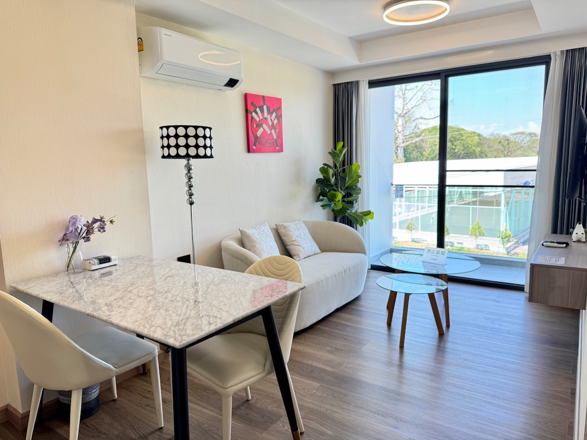 ** Stroški električne energije niso vključeni za bivanja, ki trajajo najmanj 28 dni ** # Eleganten umik v 5. nadstropju hotela The One Chiang Mai Sodobno enosobno stanovanje z osupljivim razgledom na bazen. Uživajte v družinam prijazni opremi: vodni tobogan, otroško igrišče, soba za LEGO KOCK, namizni tenis, prostor za skupno delo, sobe za meditacijo Yoda in sobe za meditacijo. Minute od nakupovalnega središča Central Festival, 10 minut do starega mestnega jedra/Nimmana. Popolna mešanica udobja in priročnosti v najbolj bogatem stanovanju v Chiang Maiju za pare ali popotnike, ki potujejo sami.