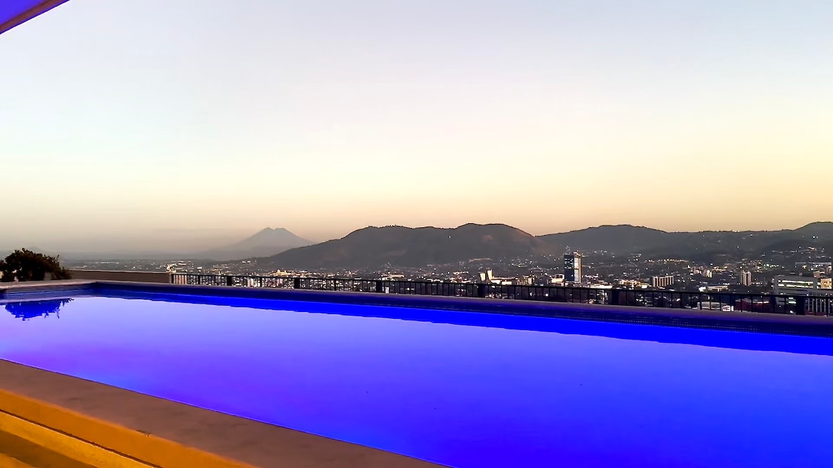 Your Modern Home in Antiguo Cuscatlán ✨ Stay in a stylish 1-bedroom apartment on the 11th floor, offering breathtaking views of San Salvador. Perfect for business trips, long-term stays, or a secure and comfortable base while exploring the city. Includes: ✔️ King-size memory foam bed, blackout curtains, desk & chair for remote work. ✔️ Modern living room with 65" Smart TV, Alexa, and sofa bed (1.70m). ✔️ Fully equipped kitchen ✔️ Private balcony with panoramic views ✔️ Parking & high-speed WiFi