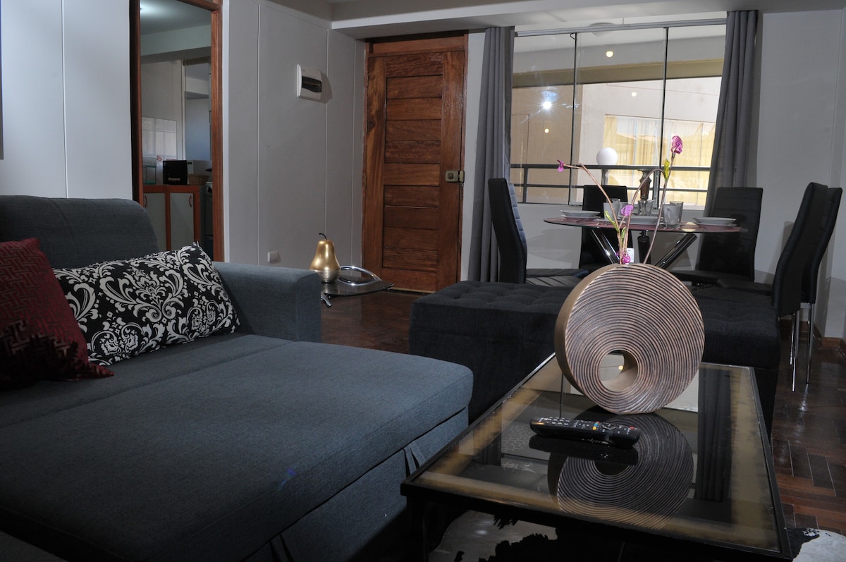 Udobno in sodobno zasebno stanovanje. Nahaja se v zgodovinskem središču Cusca, le 10 minut hoje od osrednjega trga v Cuscu. Vsaka podrobnost je bila premišljena za vašo popolno udobje. Nahaja se v mirni in varni coni, obdani z različnimi majhnimi trgovinami, kot so lekarne, trgovine z živili, restavracije in tradicionalne tržnice. Vse za primerno bivanje. Odkrijte čudesa mesta Cusco. Čakamo na vas.