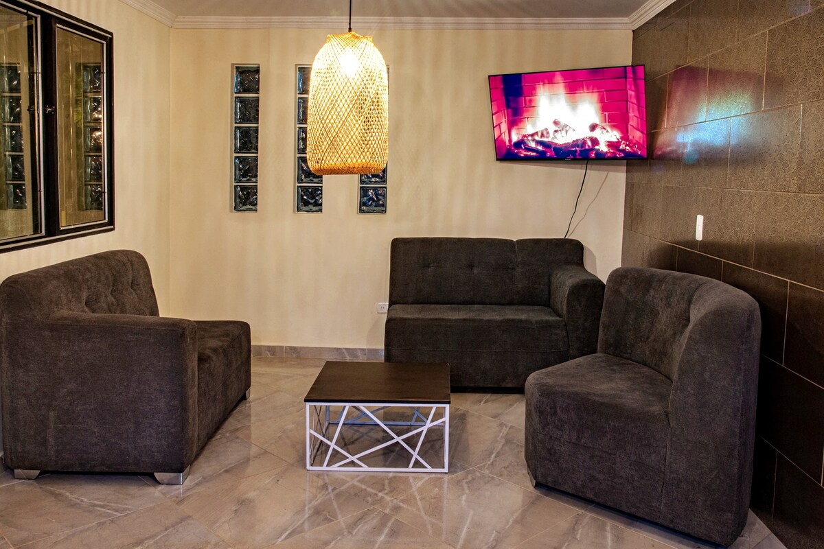 Luksuzni planinski dom v gozdu, le 50 km od Medellína. Uživajte v jacuzziju, kaminu, ognjišču, katamaranski mreži, popolnoma opremljeni kuhinji in parkirišču za 5 avtomobilov. Dve spalnici, dve kopalnici s toplo vodo, zakonska postelja, pograd in raztegljiv kavč. Idealno za pare, družine ali prijatelje, ki iščejo sprostitev in naravo v udobju. Uživajte v ekskluzivnem doživetju v osrčju vzhodne Antioquie. 🌲🔥🛁