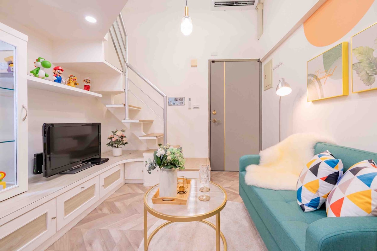 FangHouse Ximending Loft 2~5 oseb 2 spalnici 2 kopalnici. 7min Ximen MRT. Carrefour. Rdeča hiša