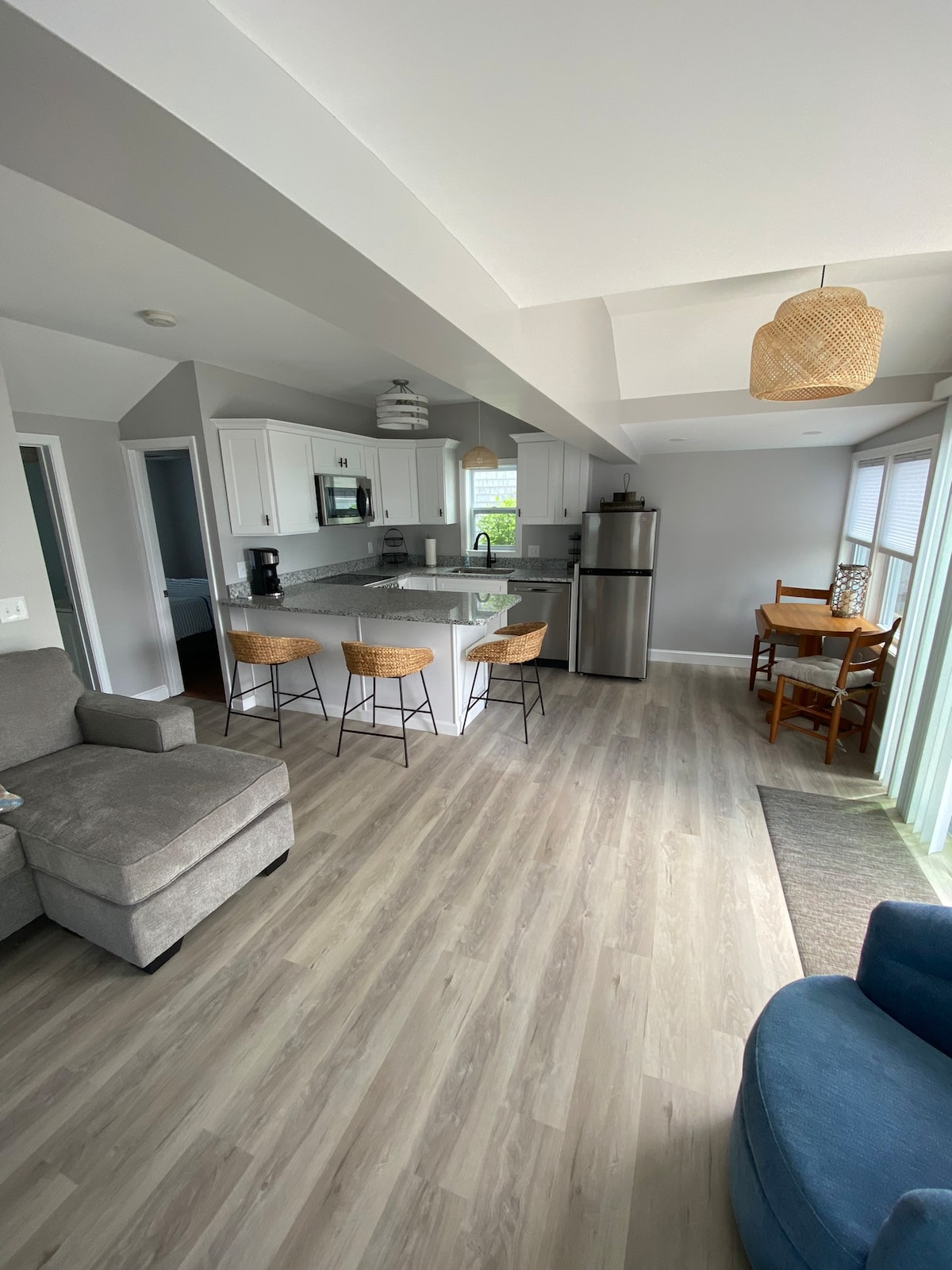 Izjemno mirna in enako elegantna hiška na obali na Velikem otoku je zatočišče, po katerem hrepenite! 2 spalnici in 1 lepo tlakovana kopalna kad, skupaj z odprto kuhinjo in dnevnim prostorom, ki povsod nudijo okna, ki jih ne boste nikoli utrudili! Sprostite se na pokriti verandi ali pa se sprehodite bosi po travi do globokomorskega pomola in sosednje plaže. Nahaja se le nekaj minut do Galileje, restavracij, trajekta Block Island, belih peščenih plaž, deskanja in še veliko več!