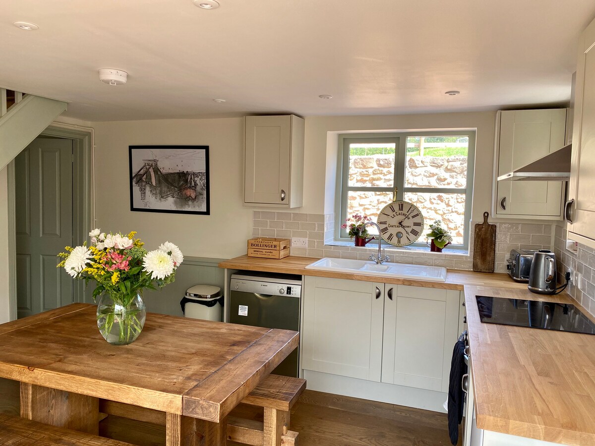 Sladka hiška na deželi v Mendip Hillsu. Pred kratkim prenovljen je, čist, urejen in eleganten. Umaknite se od vsega v prijetnem šarmu. Poslušajte potok, ki teče mimo, ali pa se sprostite v popolnoma novi masažni kadi s popolno zasebnostjo. Pozneje se lahko ogrejete v puhastih haljah pred žerjavico. Uživajte v osupljivih razgledih z vseh vidikov hiške na deželi z možnostjo, da prižgete gorilnik v zgornjem nadstropju za popolno sprostitev. Obstaja veliko možnosti za sprehode po podeželju, nekatere s pivnicami.