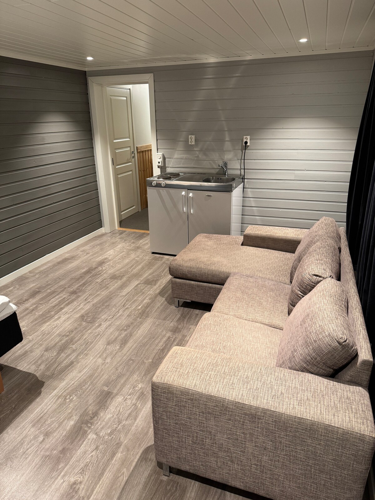 Dobro opremljeno stanovanje s prho, straniščem, mini kuhinjo s kuhalno ploščo, kuhinjsko posodo, aparatom za kavo, mikrovalovno pečico, grelnikom vode in zunanjim pohištvom na balkonu. Z nami živite v idiličnem okolju ob Ranfjordu, medtem ko ste na kratki razdalji do Moja v središču mesta Rana. Območje vabi na različne dejavnosti za vso družino. Na tem območju je tudi plavajoča savna, ki jo je mogoče rezervirati izven dodatka.