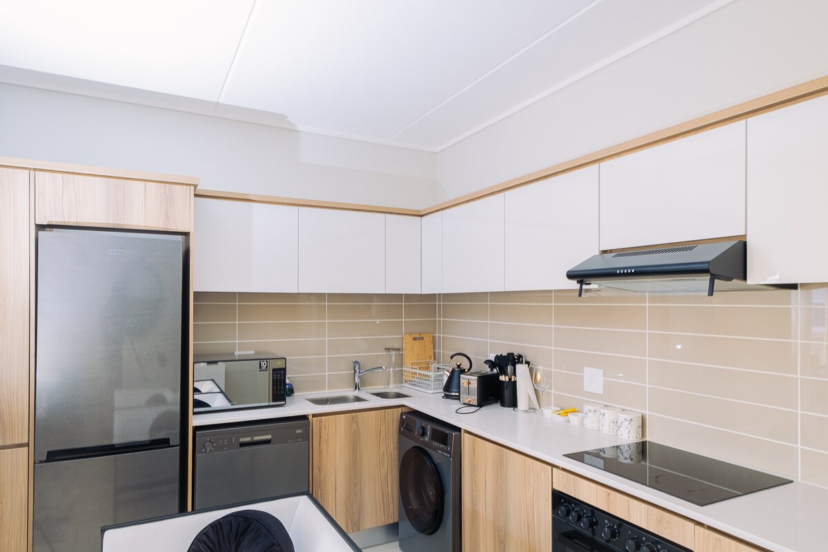 Doživite razkošno bivanje v sodobnem enosobnem stanovanju v pritličju z redkim zasebnim vrtom in prostorno teraso v sklopu nastanitve Ellipse Waterfall. Prenočišče je popolno za poslovna in zasebna potovanja, saj ima elegantno odprto zasnovo, popolnoma opremljeno kuhinjo, hiter Wi-Fi, klimatsko napravo in elegantno opremljeno spalnico. Uživajte v dostopu do vrhunskih oprem, vključno z neskončnim bazenom, najsodobnejšo telovadnico, restavracijami, spa centrom, saloni in varnostjo, ki je na voljo non stop – vse to je le nekaj minut stran od nakupovalnega središča Mall of Africa in poslovnega središča Waterfall.