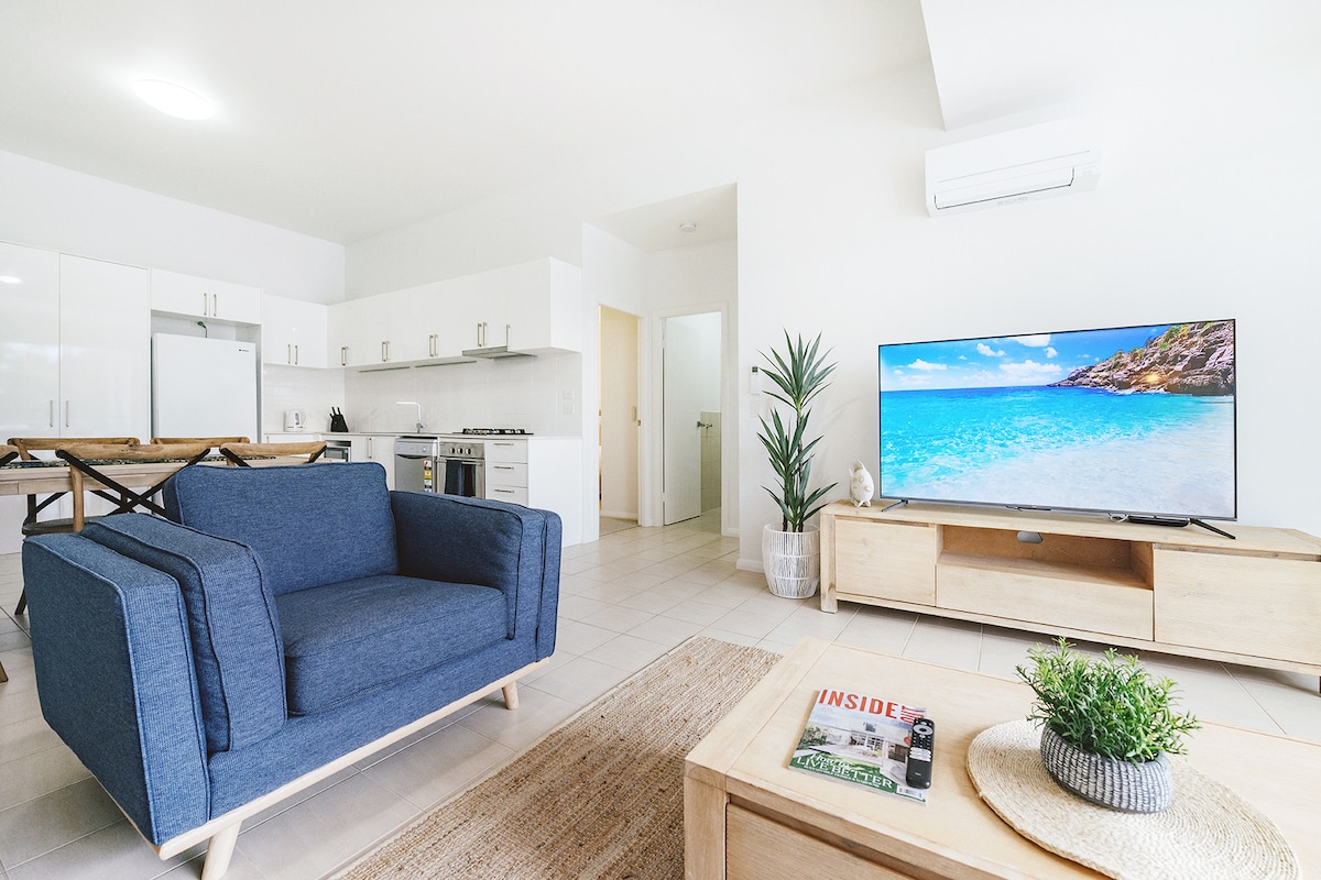Stay with us Seaside Market St @ the beautiful village of Woolgoolga. Park your car in the complimentary car space as you are in the heart of the village. Morning coffees/breakfast, swims and long walks along the beach, fish and chips on the village green, sunset drinks & dinner are all at your fingertips. With 2 bed & 2 Bathrooms Stay Seaside Market St is the perfect space for two couples or a small family.