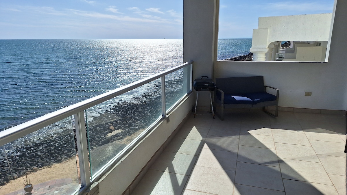 Ja, to je oceanska fronta z bazenom, zavarovanim ograjenim parkiriščem in masažno kadjo (samo ob koncu tedna). To stanovanje se nahaja ob Playa Miradorju, peš od Mannyjevega kluba na plaži in poleg dostopa do plaže. Sprehodite se lahko tudi do barov Mood in La Oficina, kjer skoraj vsak konec tedna ponujata živo glasbo. Ponujamo 4 postelje, eno zakonsko posteljo v glavni spalnici in pograd ter posteljo v polni velikosti v drugi spalnici, ki je dovolj za 6 oseb. Kuhinja je popolnoma opremljena in razgled je neverjeten.