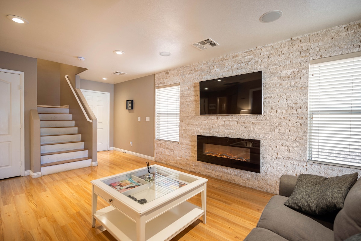 ✅ Le 4,8 milje od središča Las Vegasa - dovolj blizu, da lahko uživate v vrhunski zabavi, obedovanju in nočnem življenju, vendar dovolj daleč za čisto sprostitev ✅Las Vegas Strip 14 km/Letališče (LAS) 17 km/Stadion Allegiant 15 km/Dostop do avtoceste 5 km do I-15 in US-95 ✅ Prihranite denar, ne da bi pri tem ogrozili zasebnost ali prostor. ✅ Udobno: 4 spalnice (zakonska postelja), 2 kopalnici, kuhinja in 2 raztegljiva kavča ✅ Tiha slepa ulica ob javnem parku = zabava ✅ Ograjeno in v celoti ograjeno z veliko parkirnimi mesti v sklopu prenočišča