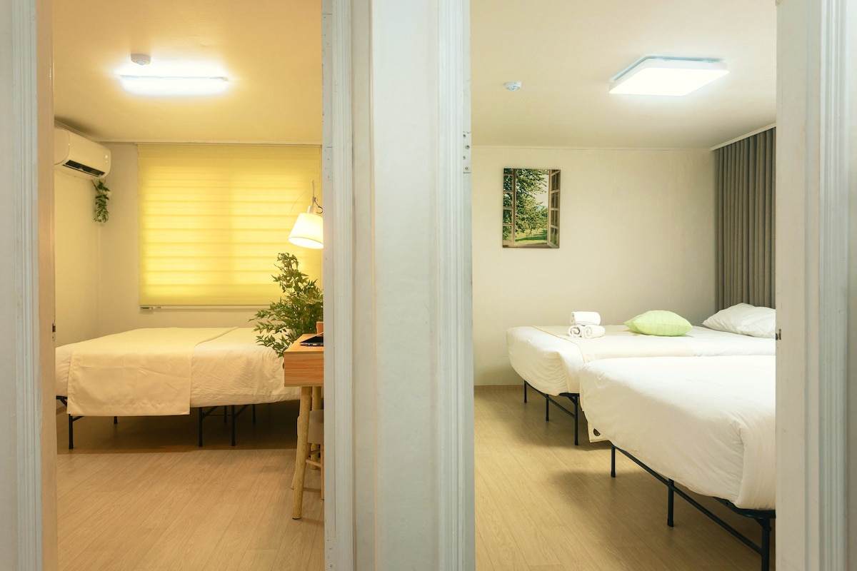 Udobna nastanitev, kot je dom/3 sobe/2 kopalnici/3 postelje/žar/samooskrba/Univerza Ansan Hanyang/skupinska nastanitev