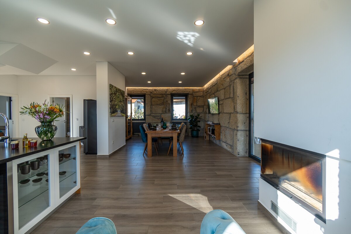 Este alojamento elegante é perfeito para viagens em grupo.Amantes da natureza, tendo à disposição vários percursos pedestres e de bicicleta a partir das ruas da aldeia. Situa-se junto à praia Fluvial de Cambra. Aloja 6 pessoas , em 3 quartos duplos, com 3 casas de banho. Dispõe de Salamandra interior, e excelentes vistas sobre as montanhas mágicas.O espaço exterior é perfeito para refeições ao ar livre e descansar no nosso jardim, enquanto lê, toma uma bebida ou contempla o mais belo pôr do sol.