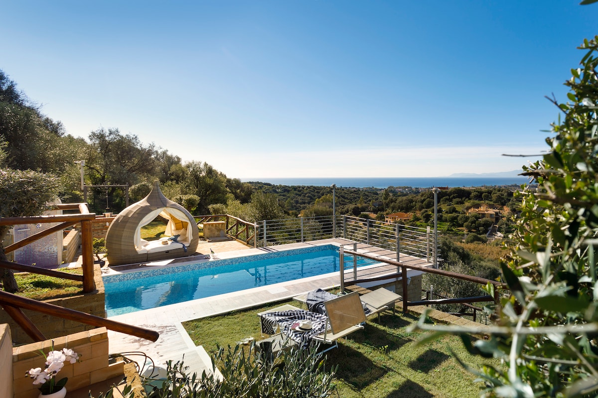 Popolnoma nova dvonadstropna hiša z ogromnim vrtom (3.000 m²), zasebnim bazenom in le 7 minut hoje od plaže Spiaggia Grande. Nahaja se na podeželju, obdano z neokrnjeno naravo, in ponuja mir in zasebnost, hkrati pa je blizu morja. Vsako leto se osredotočamo na izboljšanje udobja naših gostov. Za leto 2026 smo popolnoma prenovili kuhinjo in dodali pomivalni stroj in velik hladilnik ter avtomatska vrata na vhodu za lažji dostop.