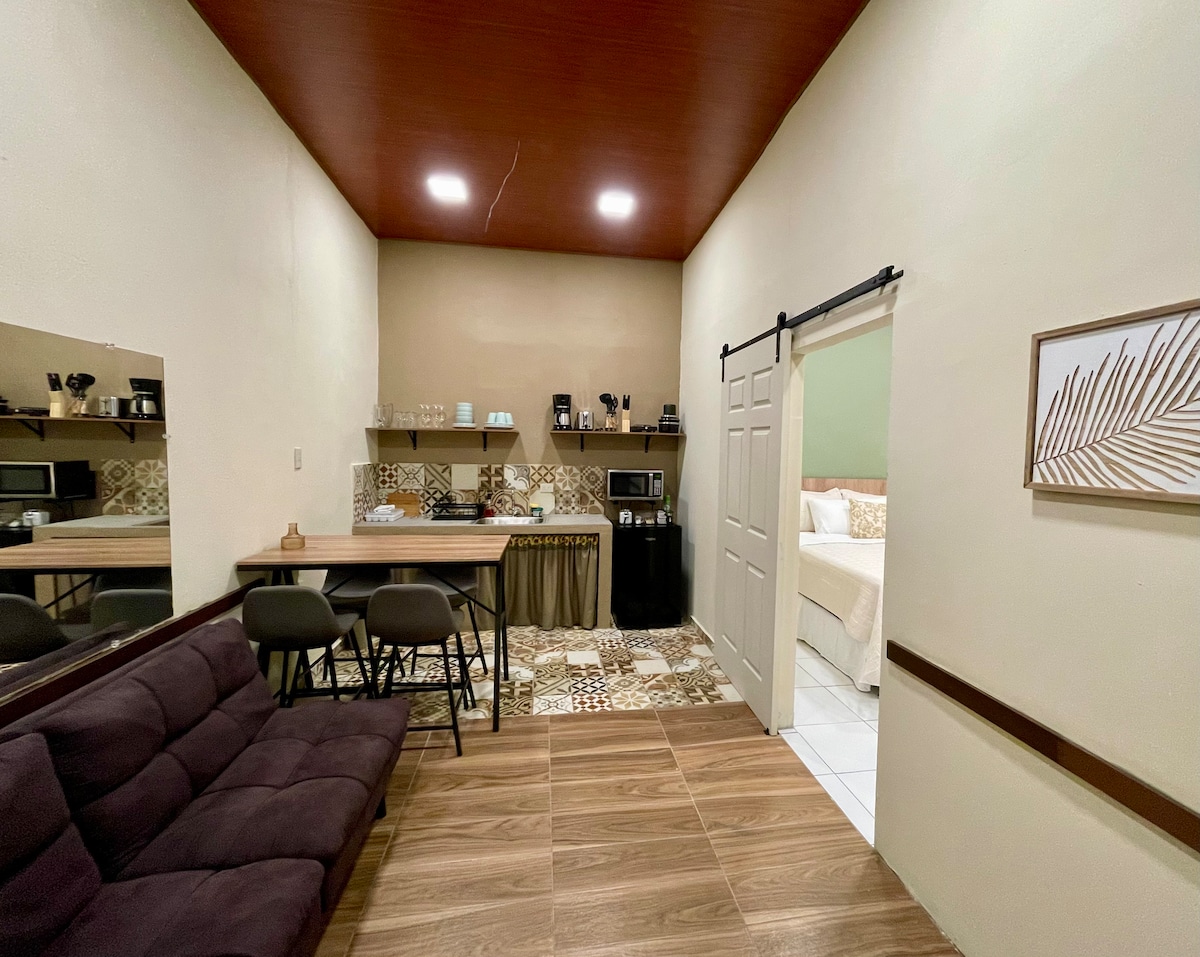 Apartamento María es moderno y acogedor, perfecto para quienes buscan comodidad, buena ubicación y un espacio para relajarse. Cuenta con aire acondicionado, una sala de cine ideal para disfrutar películas y series después de un día de actividades. Está ubicado cerca de centros comerciales, restaurantes y del corazón de Santa Ana, lo que facilita moverse por la ciudad sin complicaciones. Ideal para parejas, viajeros de descanso o trabajo que desean un lugar tranquilo, limpio y bien equipado.