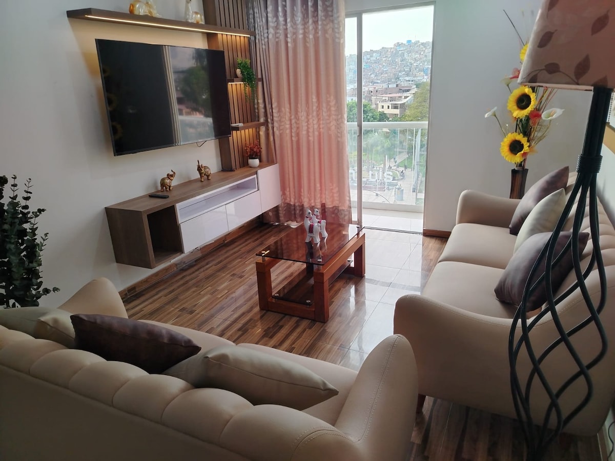 Uživajte v udobnem bivanju v tem sodobnem stanovanju, ki je namenjeno samo vam. Vsebuje prostorno spalnico, dve kopalnici, udobno dnevno sobo s pametno televizijo in popolnoma opremljeno kuhinjo. Nahaja se v varni stavbi z nadzorom 24 ur na dan, 7 dni v tednu, le 5 minut od nakupovalnega središča Aventura Santa Anita, obdana s tržnicami in restavracijami. Vaše popolno prenočišče v Limi.