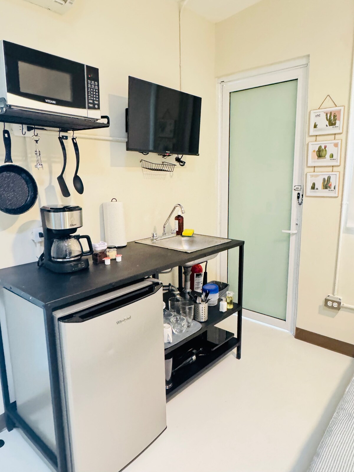 Prostorno in na novo prenovljeno stanovanje v zelo mirnem predelu Santa Catarine s prostornimi vrtovi, bazenom in telovadnico. V stanovanju z zasebnim vhodom, v pritličju, brez stopnic. Ima veliko kopalnico in omaro ter teraso s pogledom na vrtove. V spalnici sta zakonska postelja in 42-palčni televizor. Soba ima raztegljiv kavč in 65-palčni televizor. Na voljo je pralni stroj, mikrovalovna pečica, aparat za kavo, pečica, hladilnik in kuhinjski pripomočki. 10 minut od parka La Huasteca in ameriškega konzulata.