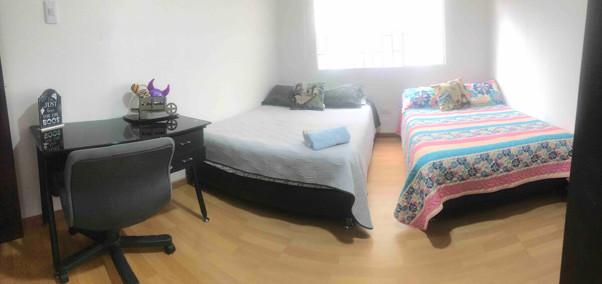 To bivališče ima strateško lokacijo - vaš obisk bo zelo enostaven. Lindisimo, razen studia, je zelo dobro oddaljen 15 minut od letališča in v bližini Jardín Botánico, Parque Simón Bolívar, Salitre Magical and Libraries! Zelo varen in miren kraj, Ima 2 spalnici, 4 prostorne postelje, TV, Wi-Fi, opremljeno kuhinjo in kopalnico z vsem; ima tudi prostorno teraso in lep razgled. Povejte nam, katera vprašanja imate? Pomagamo vam in vam svetujemo. Čakamo na vas, obiščite nas