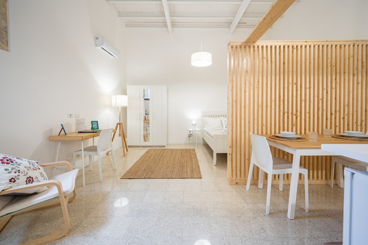 Dionisio 6 is an elegant, cozy and warm ground floor apartment, located in the Jewish neighbourhood of "La Giudecca" in the heart of ORTIGIA, just 50 mt from the sea. Our loft has been completely renovated in 2021 through a careful conservative restoration using the highest quality materials in order to respect the characteristics of the ancient building in which it is located. Functionality and design have been mixed with the antiquity of the architectural structure.