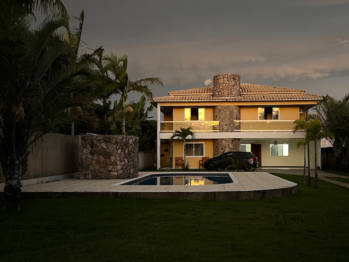 🏡 Casa de Pedra – čar, udobje in pogled na morje Casa de Pedra je idealen oddih za tiste, ki iščejo sodoben rustikalni čar, udobje in spektakularen pogled na morje 🌅 Z zasebnim bazenom, vrtom, verando in gurmanskim kotičkom z žarom je kot nalašč za sprostitev z družino, prijatelji ali v dvoje. 💛Vse sobe so klimatizirane, kar zagotavlja udobje in zasebnost. Nahaja se v ograjeni skupnosti, le 800 m od plaže Taperapuã in lokalnih trgovin 🏖️ 🌿 Hišni ljubljenčki so dobrodošli!🏖