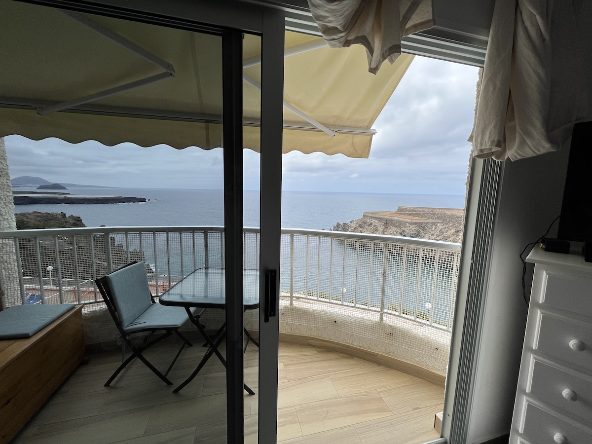 Sveže obnovljeno enosobno stanovanje s pogledom na morje iz katerega koli okna. Apartma se nahaja ob plaži, ki je od njega oddaljena pet minut hoje. Stavba ima svoj bazen in vrt. Zunaj je brezplačno parkirišče. 5 minut z avtom ali avtobusom je Icod De los Vinos. Naše mesto je znano po lokalnem vinu in gostoljubju. Bazen je zdaj zaradi koronavirusa začasno zaprt.