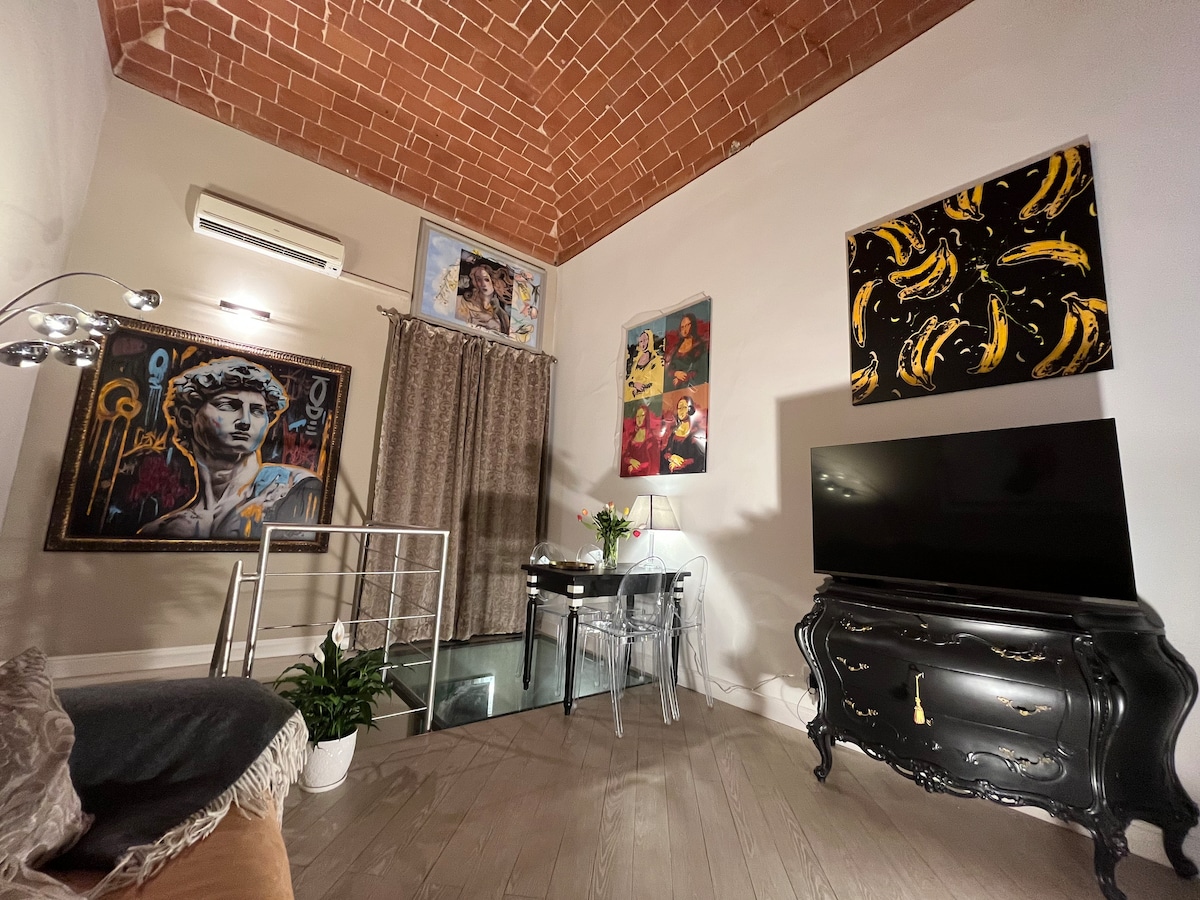 Unique and charming attic in the middle of historic center with amazing breathtaking view on the city center. Perfect for a romantic stay in the heart of Florence. Fully windowed on 3/4 walls. Completely renewed with modern design furniture. Powerful A/C, fast wi-fi, fully equipped kitchen. Going downstairs you will immediately be absorbed in the most beautiful area of city center. Attention! Only for young-soul people: 5th FLOOR, NO LIFT, last 2 flights of stairs in a narrow spiral stair.