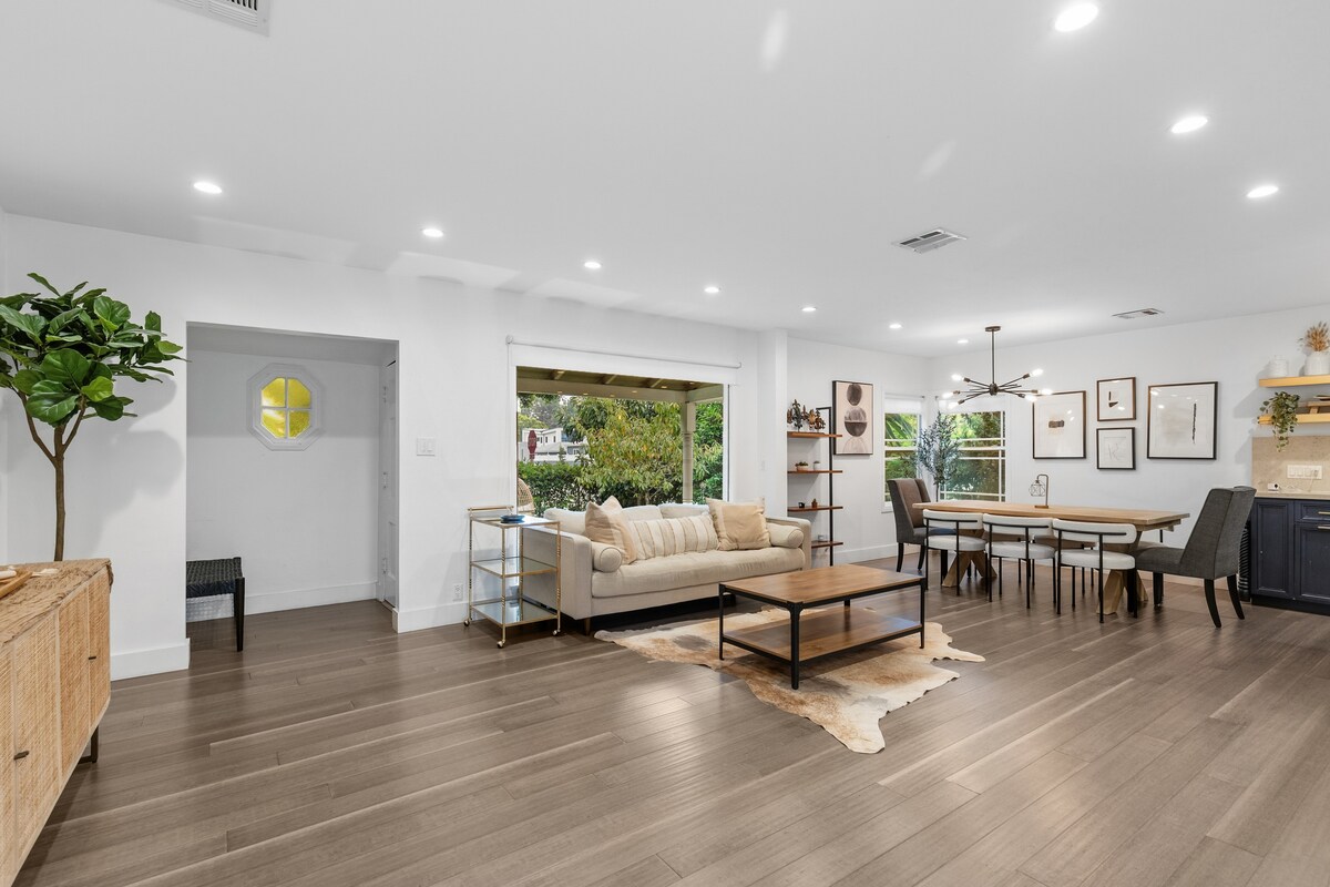 Step back in time in this sleek, recently renovated mid-century modern bungalow. Tastefully decorated with period-specific furniture and antiques as well as rare, original music and film memorabilia, this unique home is like a living museum of 20th century pop culture. Property is two miles to the beach. NOTE: While clean, well-behaved pets are welcome, we must be notified in advance. An additional $75 pet fee will be assessed.
