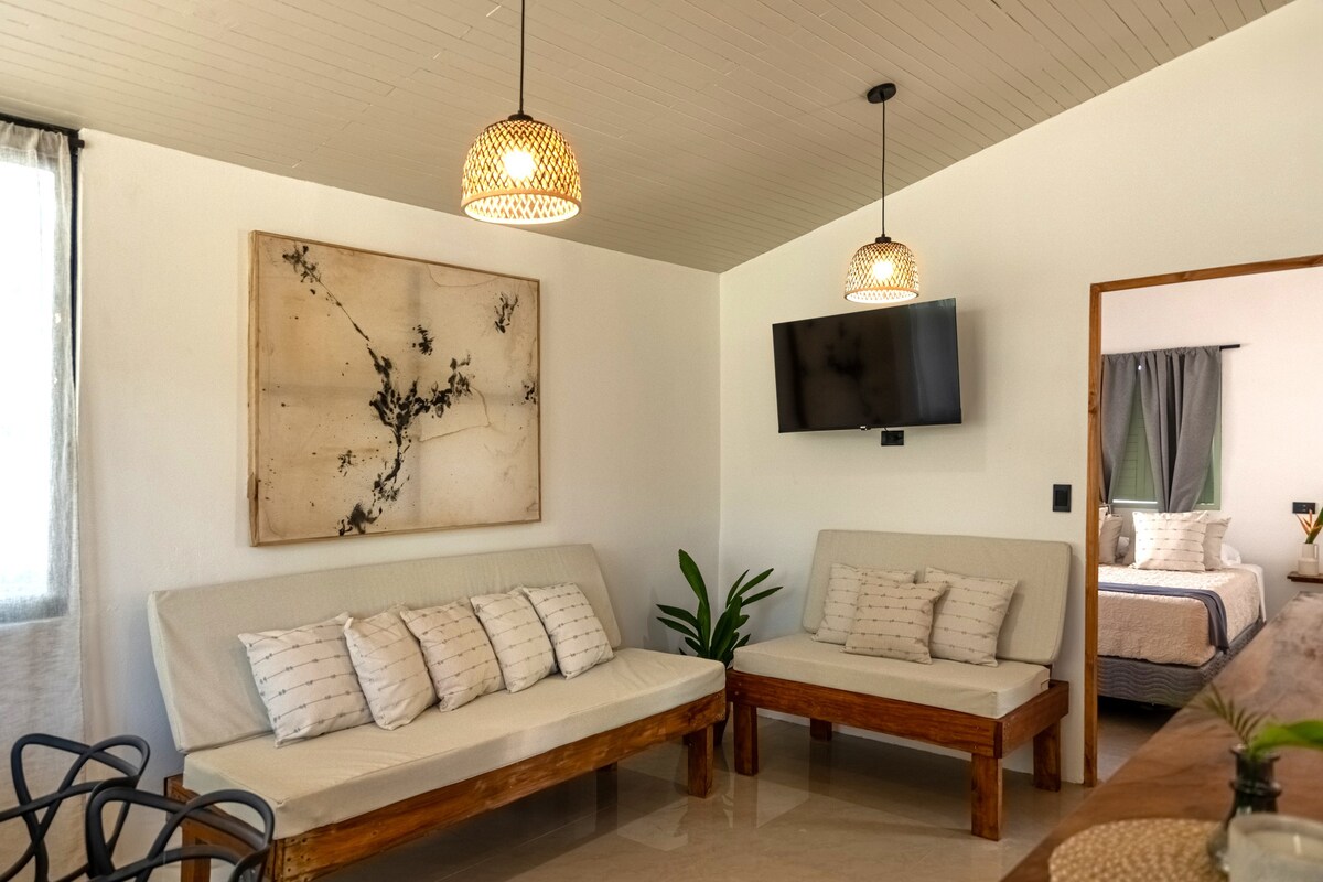 Le nekaj MINUT HOJE do PLAŽE Malpais in le 700 m od križišča Santa Teresa, naš miren pobeg je popolnoma uravnotežen z živahnim mestnim vzdušjem. To sodobno prenočišče se nahaja v bujnem zavetju s 24-urno varnostjo in čudovitim skupnim bazenom v bližini restavracij, bank in trgovin. Eleganten studio ima prilagodljive spalne prostore, izvrstno kuhinjo, udoben bivalni prostor in zunanjo teraso z odličnim žarom. Oddaljeno od glavne ceste za mirno tišino, toplo gostovanje in ljubljeno s strani gostov.