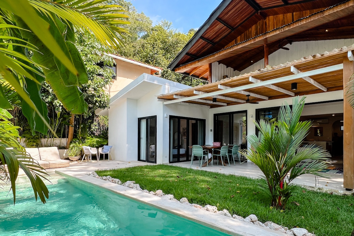Casa Eos is a refined one-bedroom luxury home set within a lush garden oasis in the heart of Santa Teresa. Designed by renowned architect Benjamin Saxe, it offers rare privacy just a 2-minute walk from the beach—without crossing the main road. Enjoy seamless indoor–outdoor living, a private plunge pool, outdoor kitchen, and easy access to top surf spots and restaurants. A gated property with night guard ensures peace of mind.
