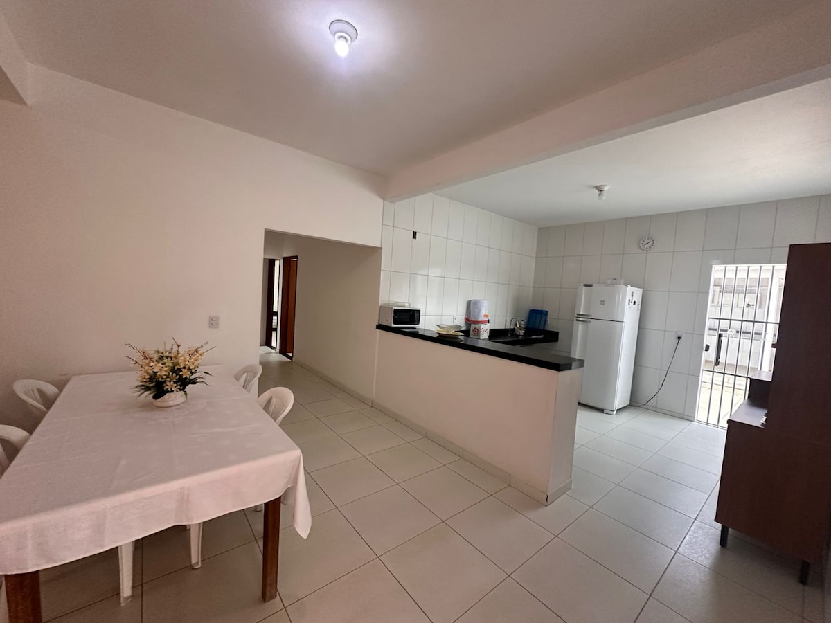 Casa arejada em bairro tranquilo, com fácil acesso e portão eletrônico. Relaxe em nossas redes ou aproveite com churrasqueira e chuveiro externo. Sala enorme; 4 quartos confortáveis (incluindo uma suíte, todos com camas de casal) e 2 colchões de solteiro avulsos; 3 banheiros (um externo); garagem para até 6 carros; cozinha completa (fogão, geladeira, micro-ondas, liquidificador, pratos, talheres e panelas). Roupas de cama, ferro de passar, TV, sofás e energia bifásica. Espaço perfeito para você!