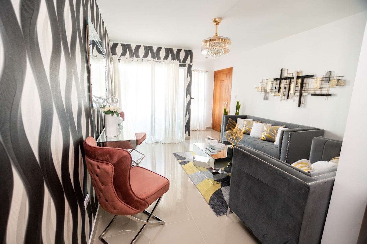 To prostorno in elegantno stanovanje ponuja udobje in slog, kot nalašč za sproščujoče bivanje. Vsaka soba in dnevni prostor ima 3 spalnice in 2,5 kopalnice, zato sta za vaše največje udobje opremljena s klimatsko napravo. Nahaja se le 10 minut od mednarodnega letališča Cibao in 8 minut od HOMSA. Blizu boste imeli vse, kar potrebujete: supermarketov, restavracij, univerz in vodnih parkov. To je popoln kraj za tiste, ki iščejo varen in miren kraj za nepozabne počitnice.