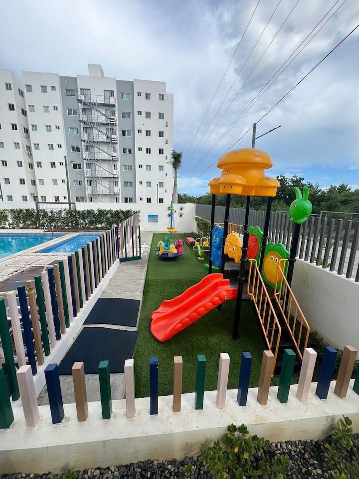 Perfect for groups and families, this elegant accommodation is ideally located near Santiago International Airport (just 8 minutes away). Enjoy easy access to vibrant restaurants, supermarkets, and nightlife while still experiencing the beauty of nearby natural spaces. The apartment features: Three bedrooms: one with a king-size bed and en-suite bathroom, two with queen-size beds Two and a half bathrooms A dedicated movie-watching area in the second bedroom Two parking spaces On-site playgrounds