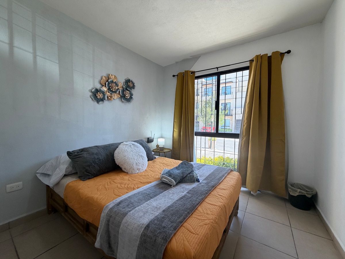 💵 Facturación Disponible 💵 🌿Refugio con estilo en Querétaro🌿 🛏️ 2 Recámaras | 2 Baños. ⭐Recámara principal Cama King baño privado. ✨Segunda recámara: Cama Queen 👶 Cuna disponible bajo solicitud Espacios Comunes 🎥 Sala de TV: Pantalla de 65" con acceso a streaming. 🍳 Cocina: Totalmente equipada para tu comodidad 🌿 Patio trasero: Tranquilo y acogedor, ideal para relajarse Amenidades 🏊 Alberca 💪 Gimnasio 🏀 Cancha de baloncesto 🎡 Área de juegos para niños ✨ Cosmos Homes Quality