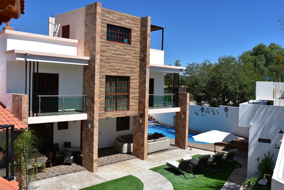 ČUDOVIT KRAJ, KJER BOSTE S PRIJATELJI IN DRUŽINO! BAZEN S SONČNIMI GRELNIKI ☀️☀️ 30 minut od središča Querétara, 15 minut od vasi Huimilpan, nekaj minut od vinogradov in pobočij Go Kartsa. 20 minut od Cerro del Cimatari, kjer se lahko sprehodite ali vozite s kolesom. Odličen prostor za uživanje v družbi prijateljev ali družine za zabavo ali počitek.